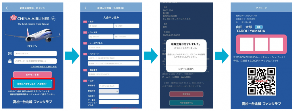 ・チャイナエアライン高松-台北線の往復利用が条件となります。
