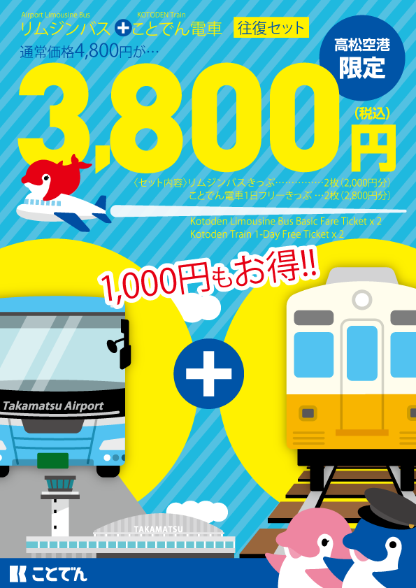 内 容:高松方面行きのバス(ことでんバス)チケット2枚+ことでん電車1日フリーきっぷ2枚