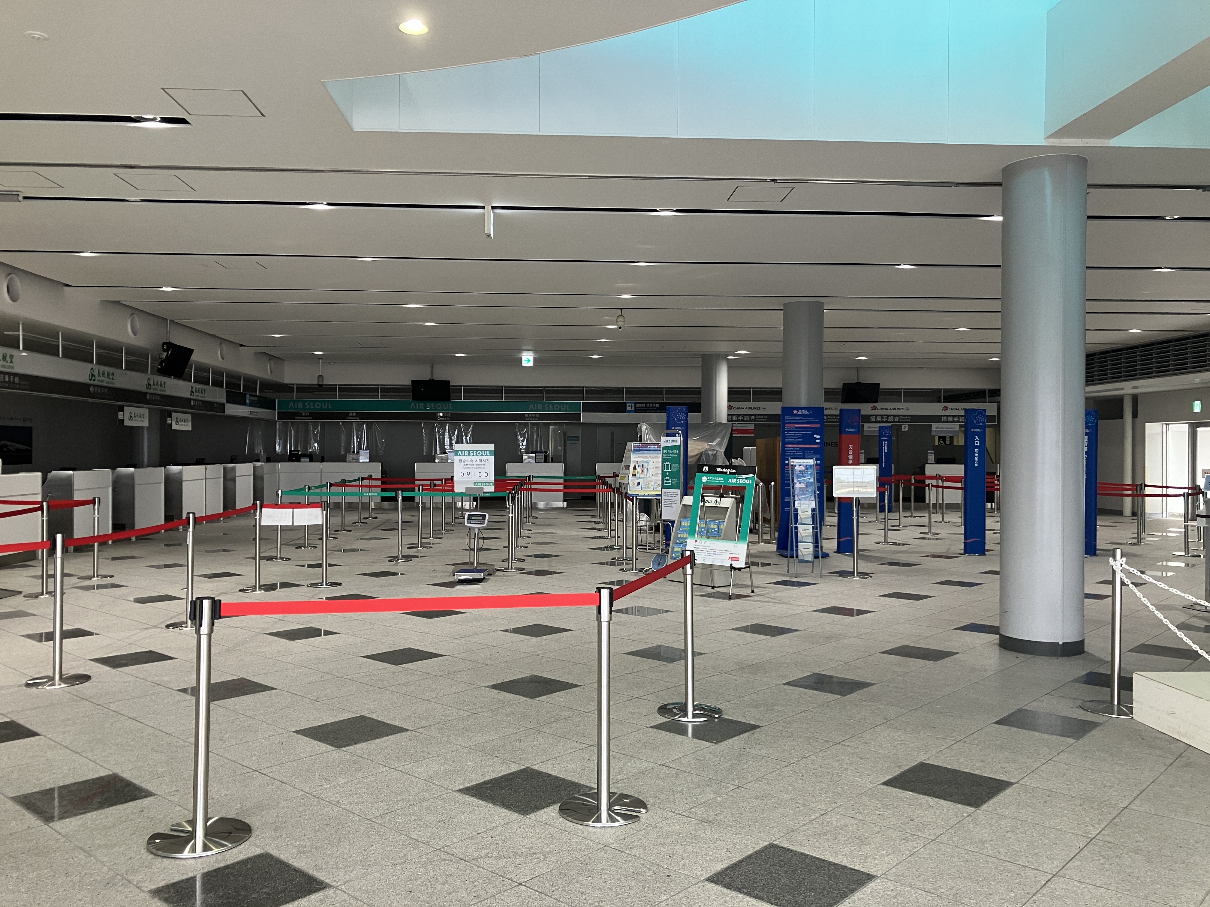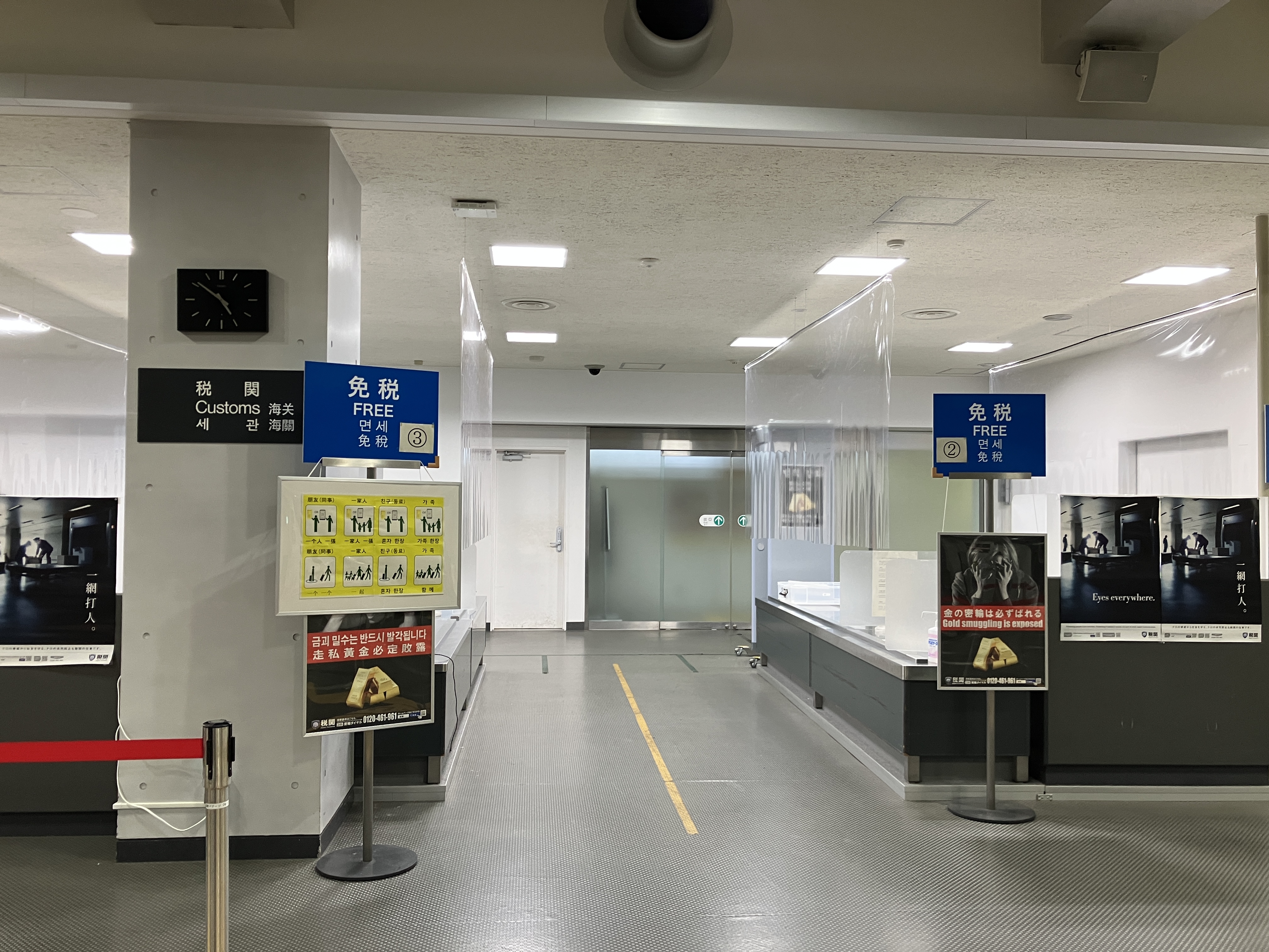 出発の1時間30分前から30分前までに、身体検査と手荷物検査を受けてください。