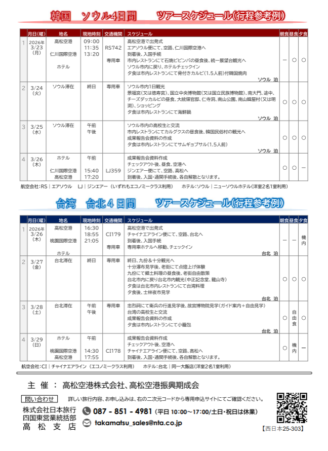 高松空港から韓国・台湾への修学旅行をプロデュースしてみませんか?