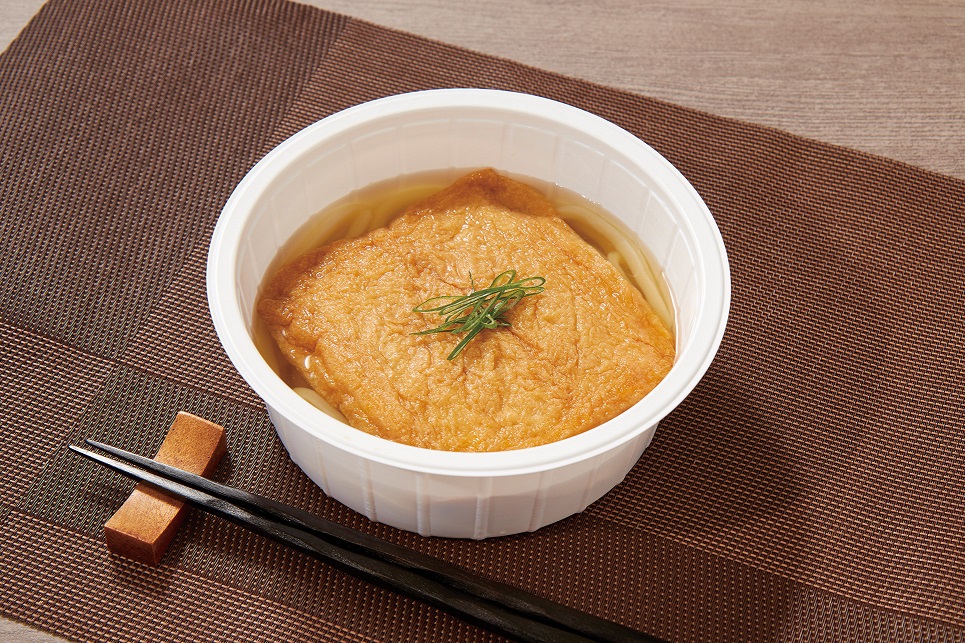 きつねうどん 900円(税込) (メーカー:㈱active neo)厳選したさば節・うるめいわし・利尻昆布を使ったコク深い出汁に、ふっくら甘いお揚げをたっぷりのせました。麺は国産小麦粉・塩・水のみで仕上げた無添加仕様。もちもちとした弾力と、つるりとした食感が特長です。