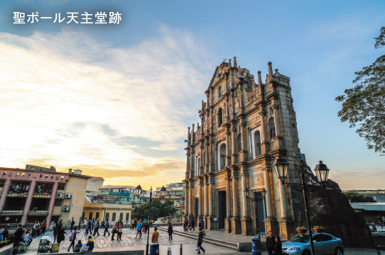 香港からはフェリーやシャトルバスで入国可能。マカオの象徴「聖ポール天主堂跡」や人気スポット「セナド広場」など、見ごたえある数多くの世界遺産が待っています。娯楽都市コタイでカジノやリゾートを楽しむプランも!